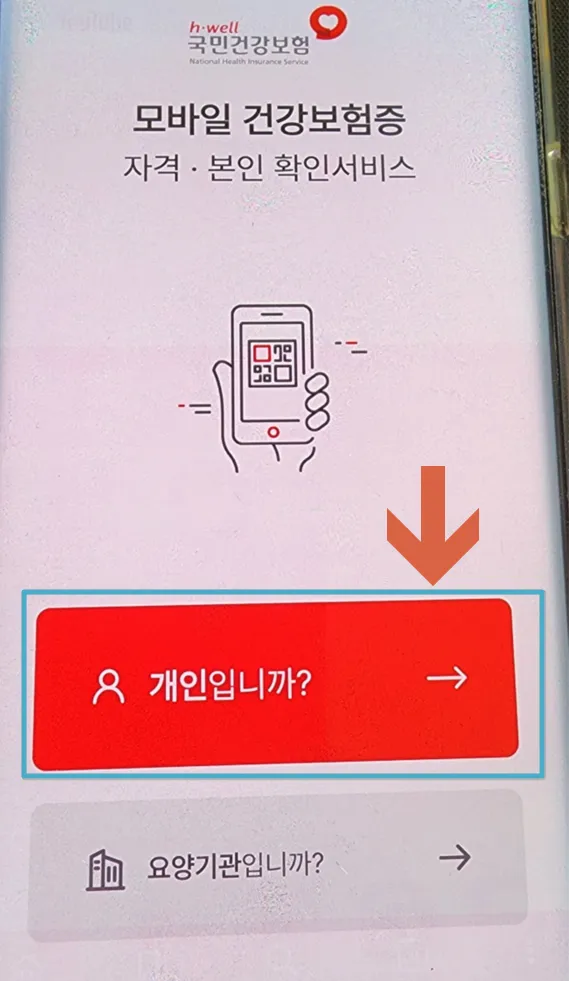 - 앱 실행 후, [개인입니까?] 버튼 터치
