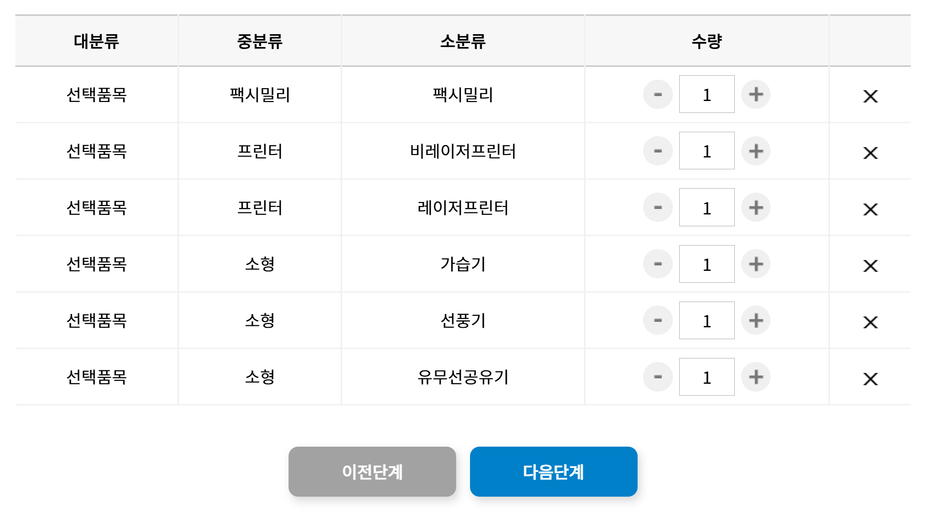 - 소형 가전제품의 경우, 5개 미만의 요청 시