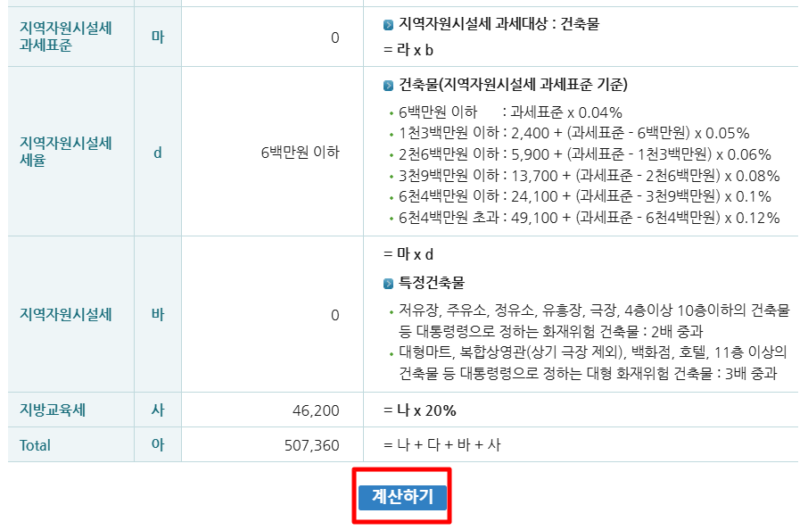 서울 ETAX 사이트에 공시지가 가격을 입력하고, 공정시장가액비율을 60%로 설정한 후 계산을 진행하면 됩니다.