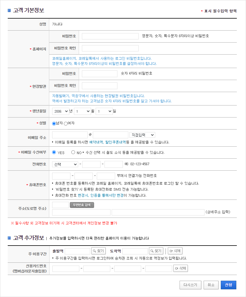 고객정보 입력하여 회원가입을 합니다. 미리 가입을 해 놓는 것이 좋습니다.