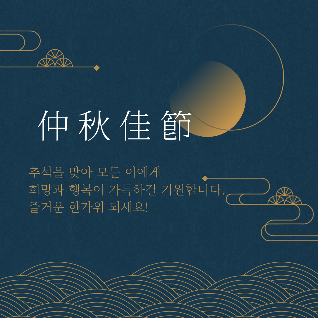 - 결실의 계절, 하시는 일마다 풍요와 성공이 함께하시길 바랍니다. 행복한 추석 되세요!