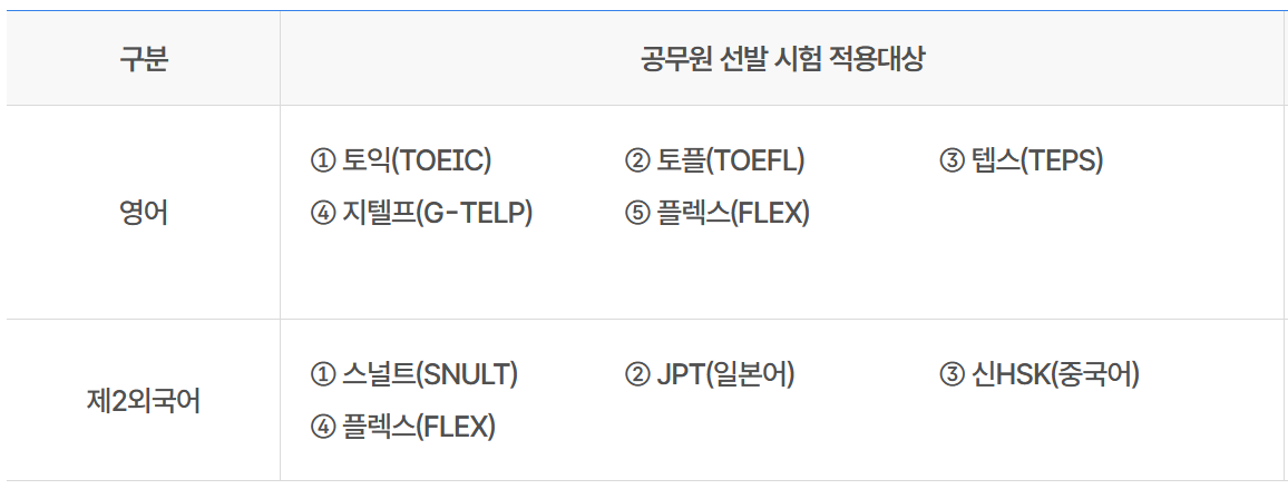 📚 공무원 선발 시험에 적용되는 어학시험 종류