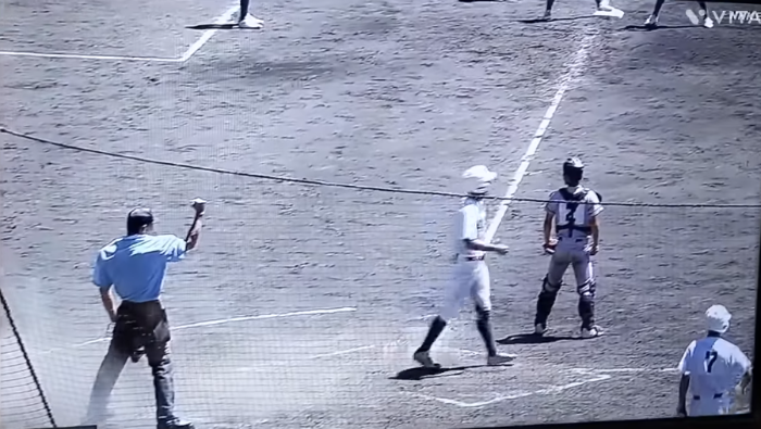 1루수 藤本春樹 (후지모토 하루키)입니다. 그는 9번 타자의 타구를 잡고 홈으로 송구해 홈에서 아웃을 만들어냈습니다.