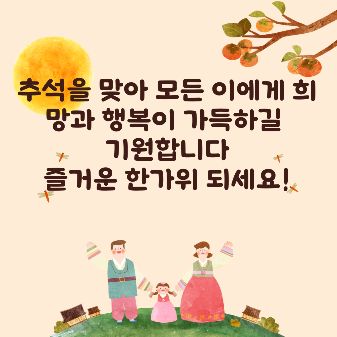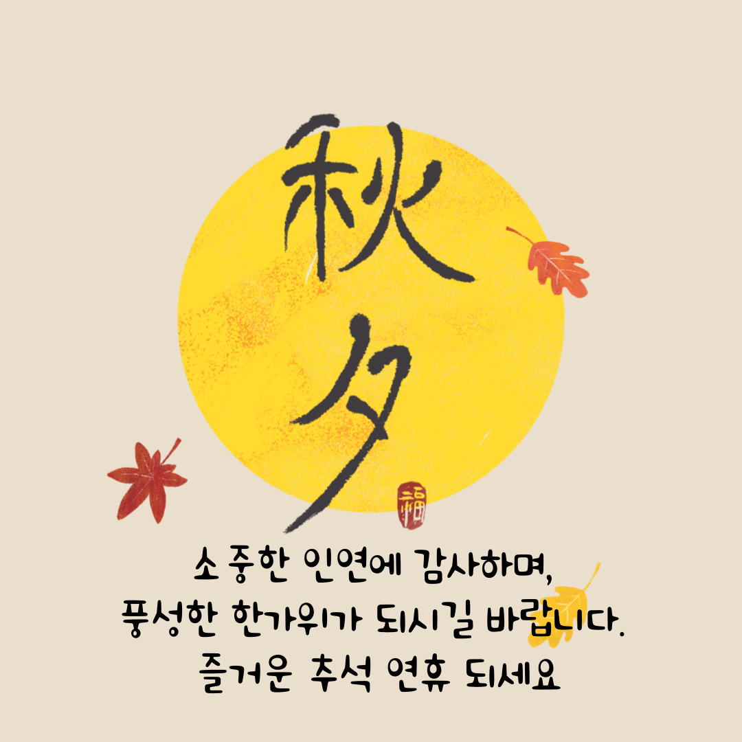 - 결실의 계절, 하시는 일마다 풍요와 성공이 함께하시길 바랍니다. 행복한 추석 되세요!