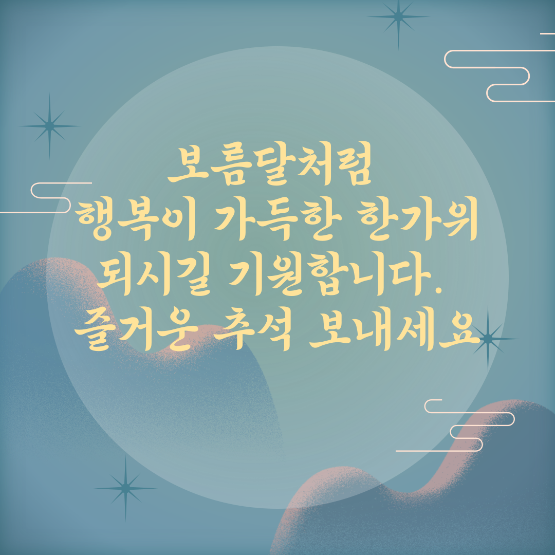 - 가득 차오른 보름달처럼 행복과 건강이 모두 차오르길 빕니다. 즐거운 추석 연휴 되세요
